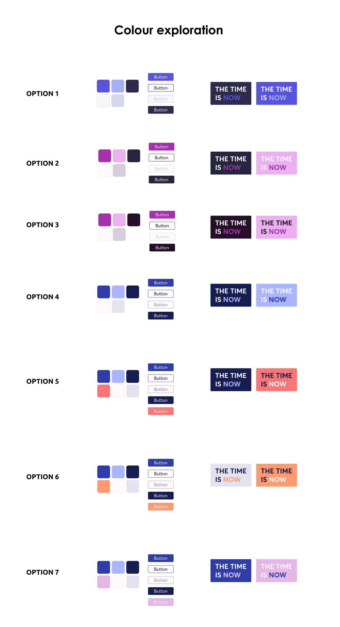I explored colour directions to define a minimal, accessible, and inviting brand palette, balancing simplicity with a sense of warmth and energy.
