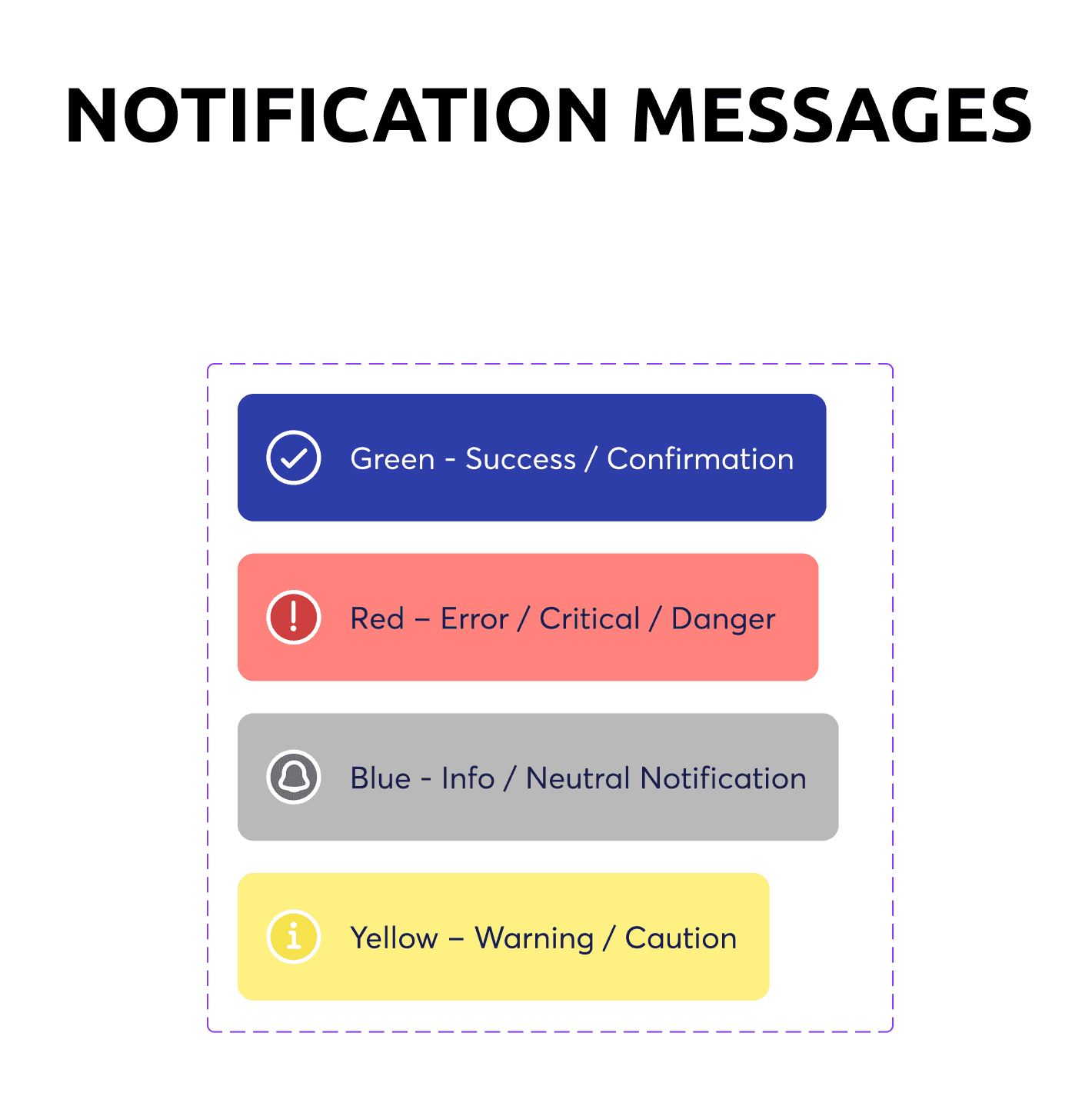 I also refined system message colours, testing shades within the brand palette to better distinguish between success, error, warning, and information states. Icons were paired with each message to reinforce clarity.